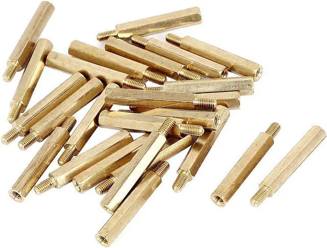 M3x25+6mm Female/Male Thread Brass Hex Standoff Pillar Spacer Coupler Nut 25pcs