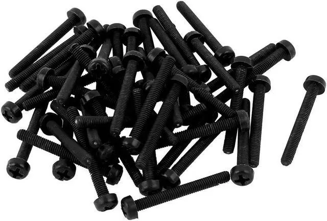 M3 x 25mm Nylon Phillips Cross Pan Head Machine Screws Black 50 PCS
