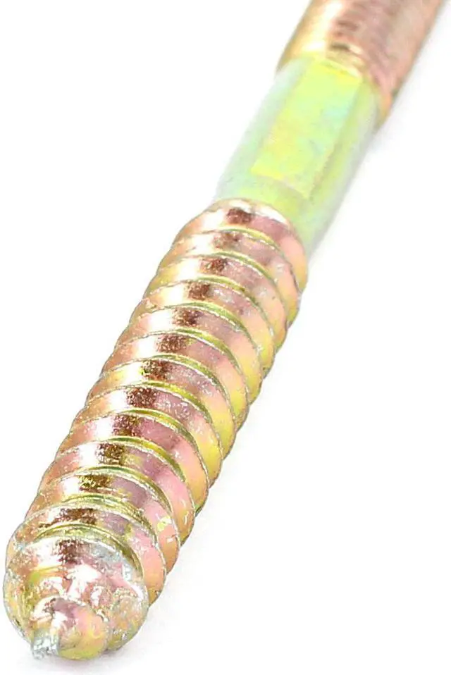 Stud screw, double ended stud with a machine thread on one end and a woodscrew thread on the other. Used for many applications when fixing threaded fasteners to timber or plugs.