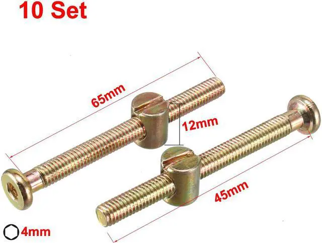 M6x65mm Hex Key Drive Socket Cap Furniture Bolt w M6x12mm Barrel Nut 10 Set