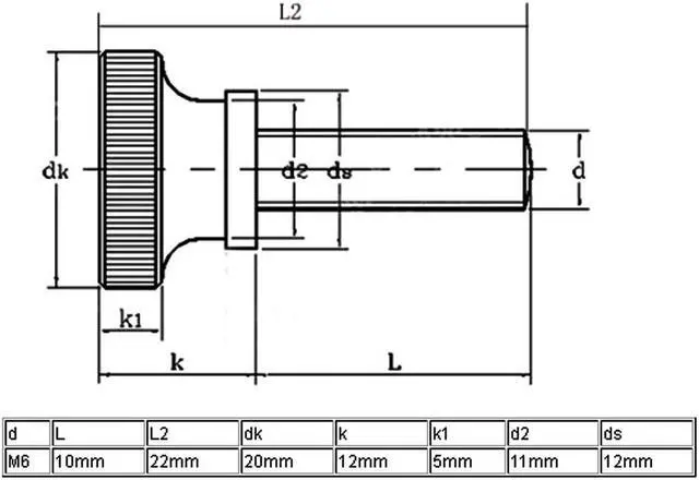 M6x10mm Round thumb screw with flat knurled head style.