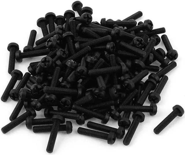 M2.5 x 12mm Plastic Phillips Cross Pan Head Machine Screws Black 100 PCS