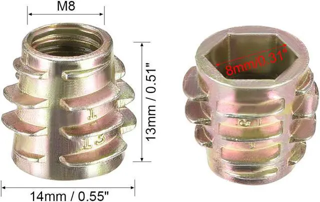 2.Ideal for use in materials such as pine, plywood, composition board, and MDF, Hex Drive inserts feature tapered external threads which resist pull out caused by vibration.