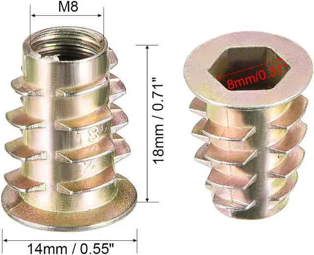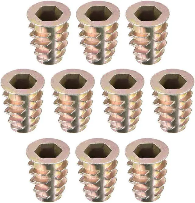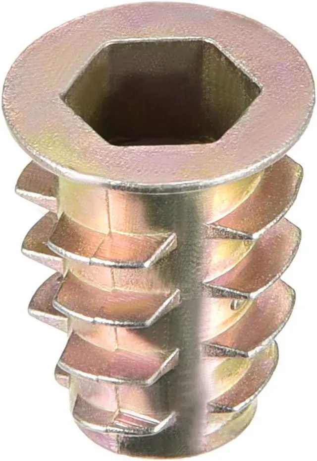 2.Ideal for use in materials such as pine, plywood, composition board, and MDF, Hex Drive inserts feature tapered external threads which resist pull out caused by vibration.