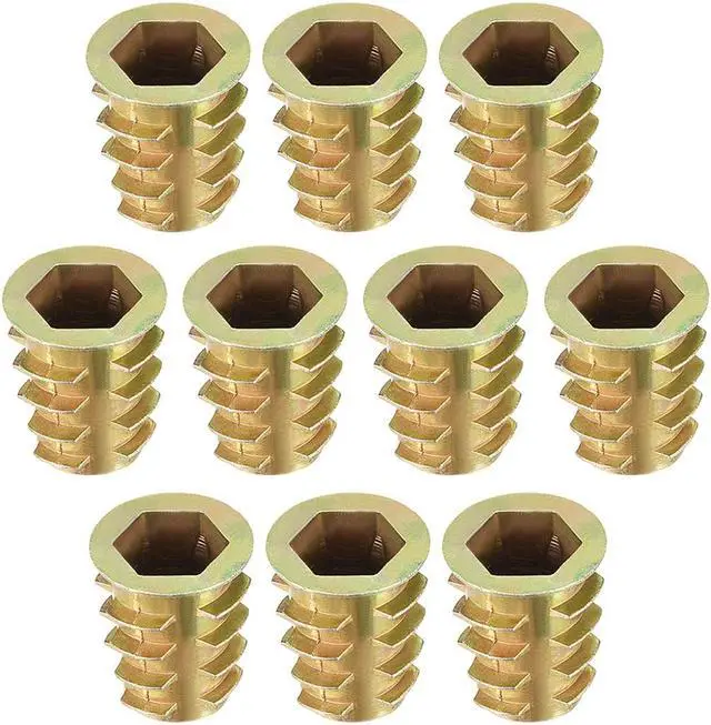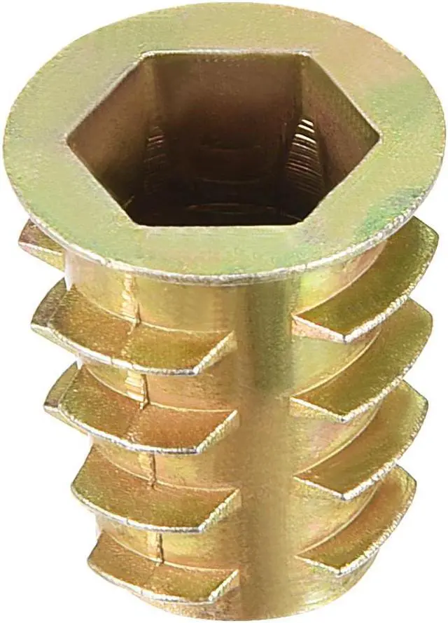 2.Ideal for use in materials such as pine, plywood, composition board, and MDF, Hex Drive inserts feature tapered external threads which resist pull out caused by vibration.