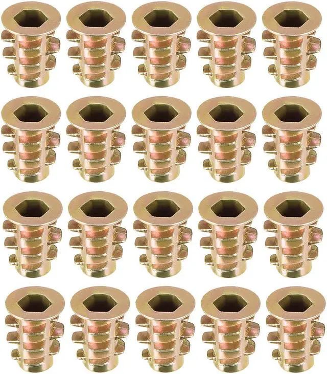 2.Ideal for use in materials such as pine, plywood, composition board, and MDF, Hex Drive inserts feature tapered external threads which resist pull out caused by vibration.