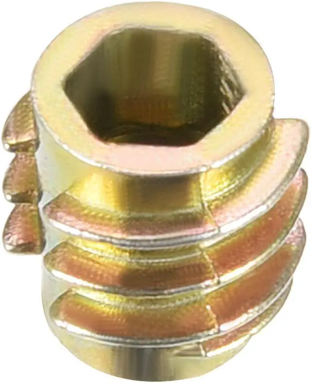 2.Ideal for use in materials such as pine, plywood, composition board, and MDF, Hex Drive inserts feature tapered external threads which resist pull out caused by vibration.