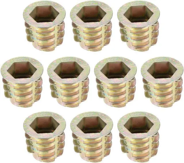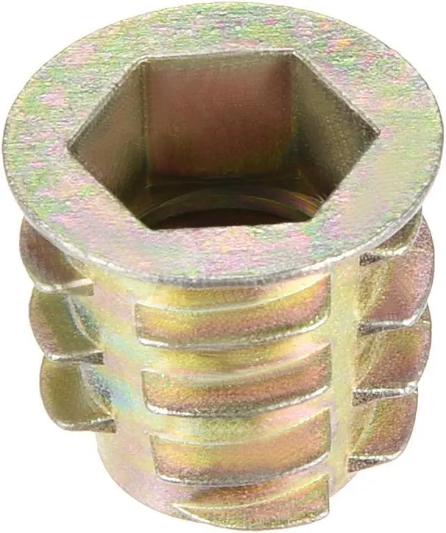 2.Ideal for use in materials such as pine, plywood, composition board, and MDF, Hex Drive inserts feature tapered external threads which resist pull out caused by vibration.