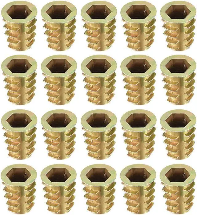 2.Ideal for use in materials such as pine, plywood, composition board, and MDF, Hex Drive inserts feature tapered external threads which resist pull out caused by vibration.