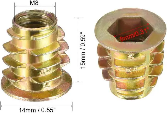 2.Ideal for use in materials such as pine, plywood, composition board, and MDF, Hex Drive inserts feature tapered external threads which resist pull out caused by vibration.
