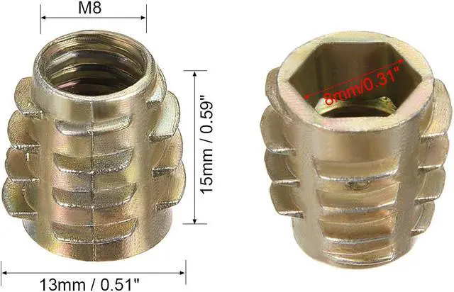 1.Hex Drive inserts for soft wood are an inexpensive insert for use in ready-to-assemble furniture, drawer pulls, or wherever the avoidance of thread stripping is desired.