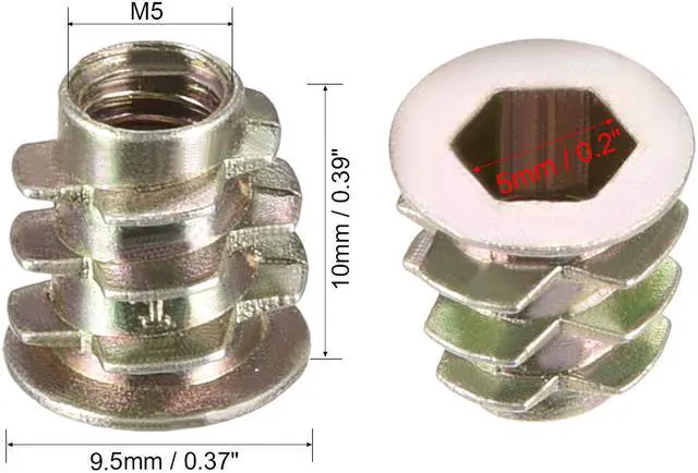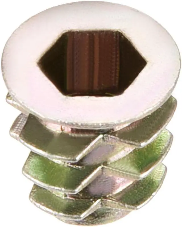 2.Ideal for use in materials such as pine, plywood, composition board, and MDF, Hex Drive inserts feature tapered external threads which resist pull out caused by vibration.