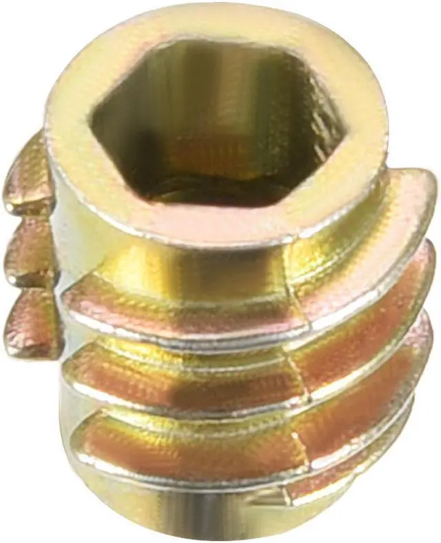 2.Ideal for use in materials such as pine, plywood, composition board, and MDF, Hex Drive inserts feature tapered external threads which resist pull out caused by vibration.
