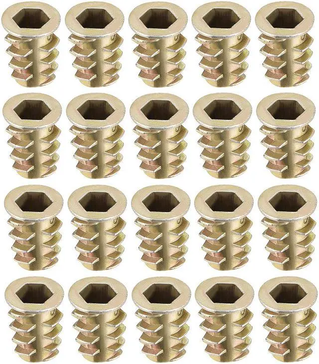 2.Ideal for use in materials such as pine, plywood, composition board, and MDF, Hex Drive inserts feature tapered external threads which resist pull out caused by vibration.