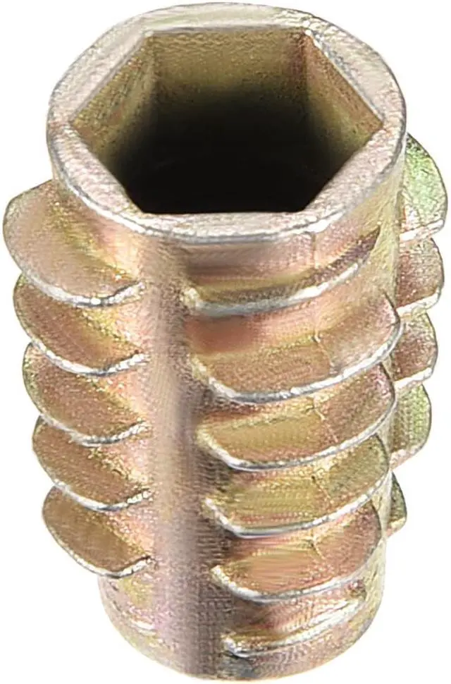 2.Ideal for use in materials such as pine, plywood, composition board, and MDF, Hex Drive inserts feature tapered external threads which resist pull out caused by vibration.