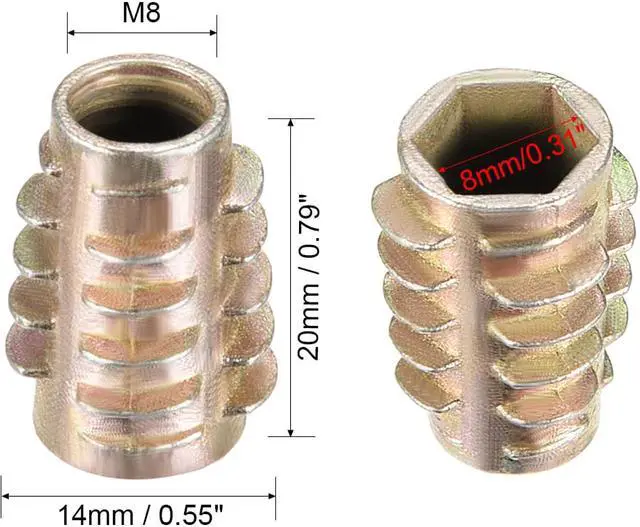 1.Hex Drive inserts for soft wood are an inexpensive insert for use in ready-to-assemble furniture, drawer pulls, or wherever the avoidance of thread stripping is desired.