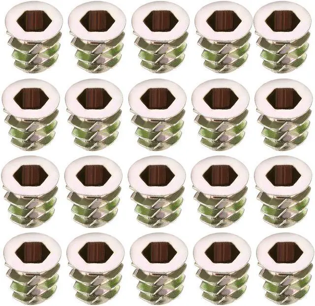 2.Ideal for use in materials such as pine, plywood, composition board, and MDF, Hex Drive inserts feature tapered external threads which resist pull out caused by vibration.