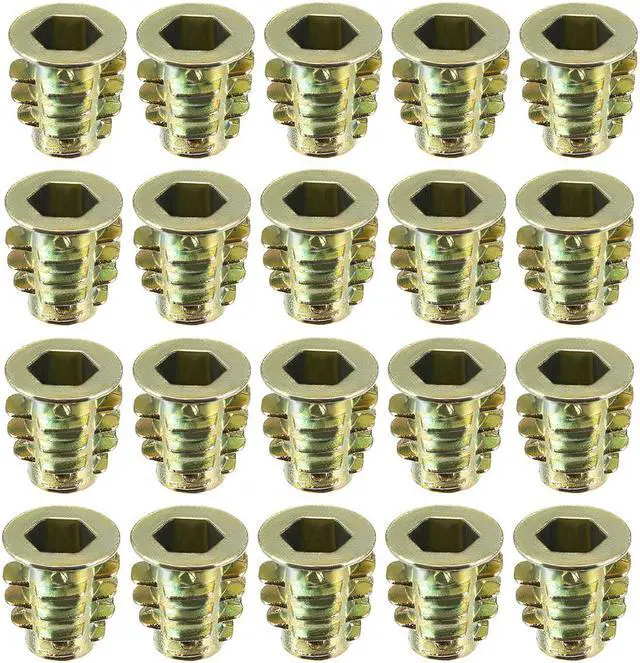2.Ideal for use in materials such as pine, plywood, composition board, and MDF, Hex Drive inserts feature tapered external threads which resist pull out caused by vibration.