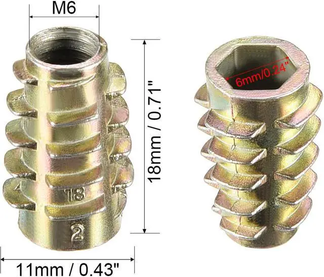 1.Hex Drive inserts for soft wood are an inexpensive insert for use in ready-to-assemble furniture, drawer pulls, or wherever the avoidance of thread stripping is desired.