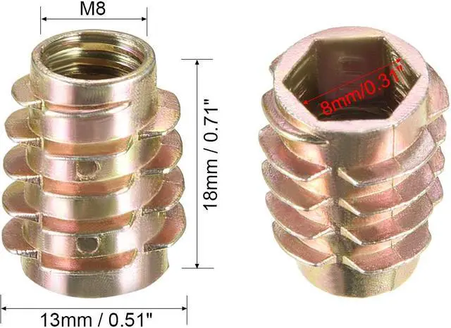 1.Hex Drive inserts for soft wood are an inexpensive insert for use in ready-to-assemble furniture, drawer pulls, or wherever the avoidance of thread stripping is desired.