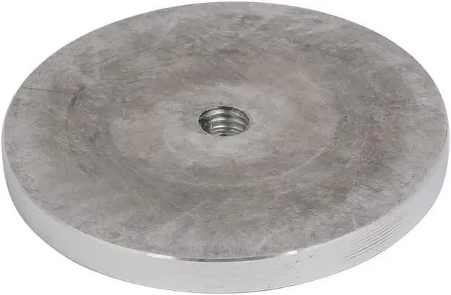Made of aluminum material with glossy surface. Wonderful accessory for glass tables, tea tables, etc. Features 80mm Diameter x 8mm Thickness, M10 Thread Hole. Mounting screws are not included.