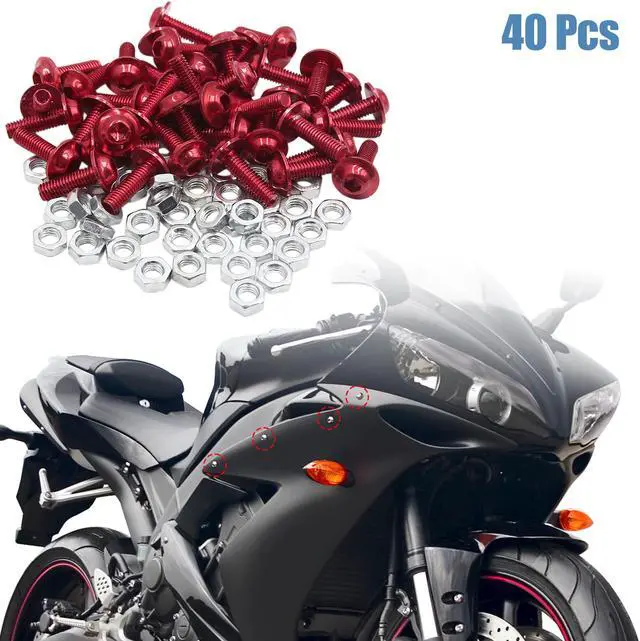 Package Content: 40 x Motorcycle Bolts Screws,40 x Nuts; Shell Color: Red