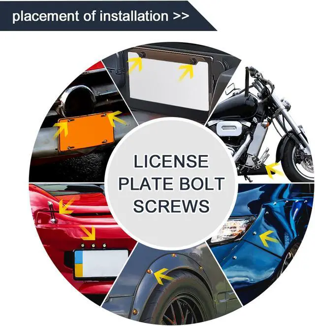 Throw the original bad bolts/screws of the license plate frame and install our beauty.