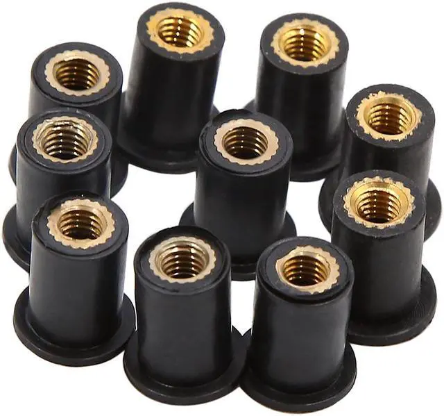 These 5mm (M5) universal rubber well nuts fit most windscreens, body, other motorcycle and ATV applications.