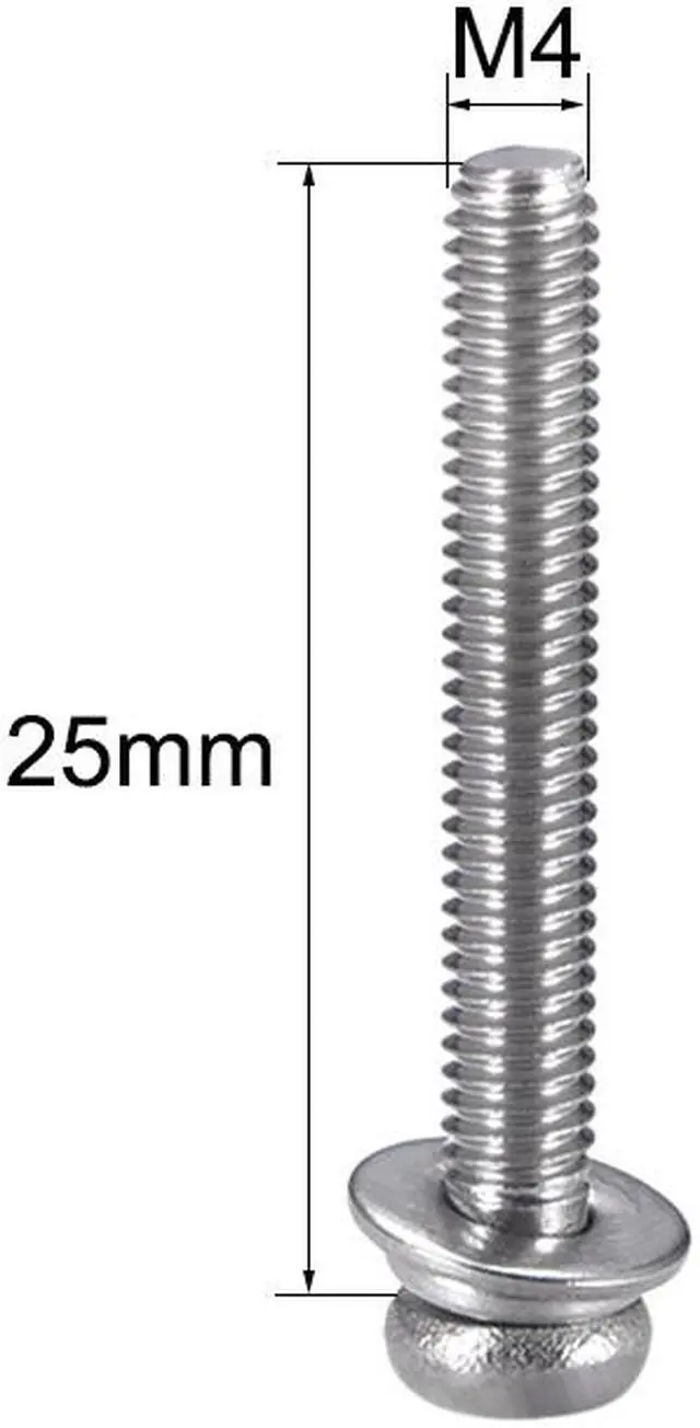 1.5 Pieces high quality Phillips pan head bolts screw lock flat washers, M4 x 25mm (Head does not included).