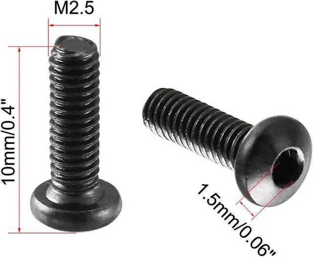 Package Content: 100(+/-2%)pcs x Button Head Screws; Product Name: Button Head Screws; Thread Size: (Male)M2.5x8mm/0.1"x0.3"(D*L)