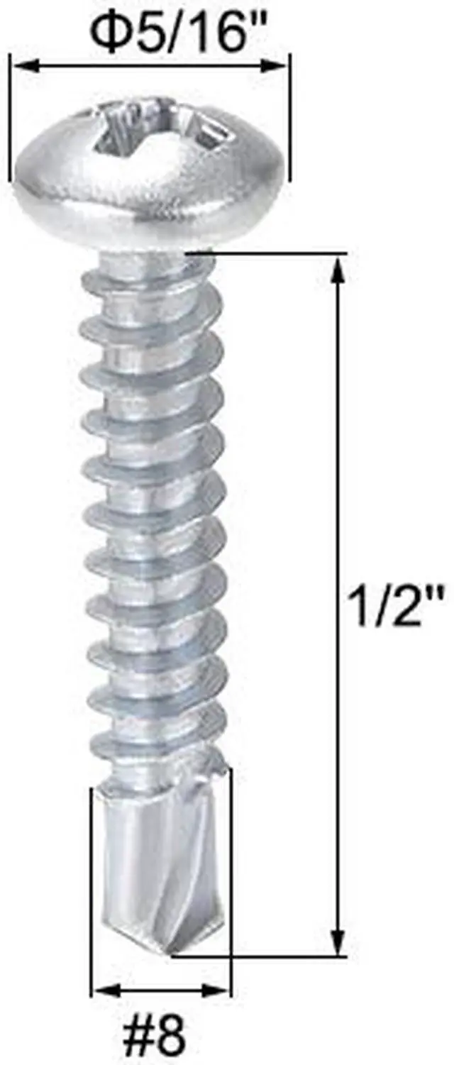 Diameter: #8 ( 4.2 mm)Length (not include screw head): 1/2' ' (13mm) Screw