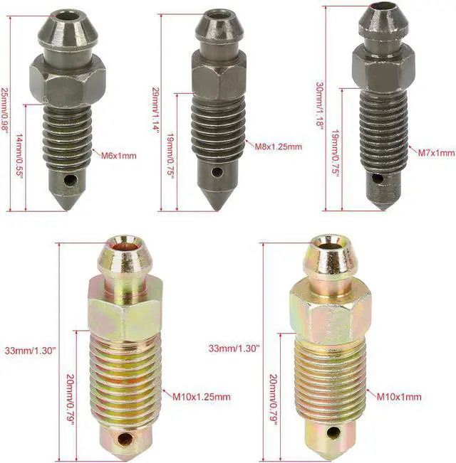 Size: M6x1mm(2pcs), M7x1mm(2pcs), M8x1.25mm(2pcs), M10x1mm(2pcs), M10x1.25mm(2pcs) Banjo Bolt Bleeder Screw; Material: Metal