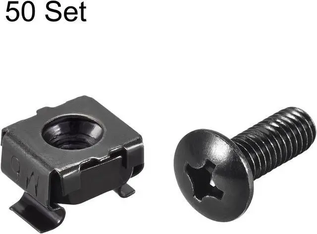 Screw Length:16mm/0.62inchColor: BlackPackage Content:KEY_TAB 50Pcs x M6 Cage Nuts50Pcs x M6 KEY_TAB Screws