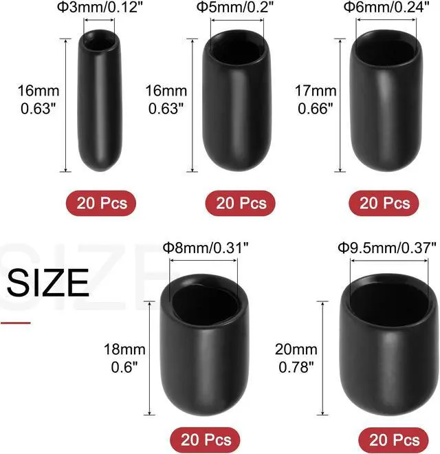 Inner Dia : 3mm/0.12-inch, 5mm/0.2-inch, 6mm/0.24-inch, 8mm/0.31-inch, 9.5mm/0.37-inch