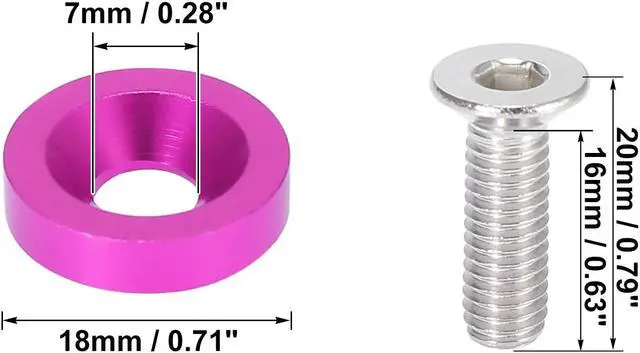 Washer Size: 7x18mm/ 0.28"x0.71" (ID*OD); Bolt Size: M6x1.0; Bolt Stem Length: 16mm/0.63"; Bolt Total Length: 20mm/0.79". Please confirm the size carefully before ordering.