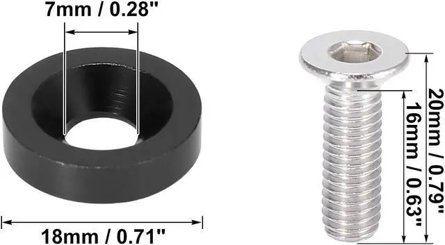 Washer Size: 7x18mm/ 0.28"x0.71" (ID*OD); Bolt Size: M6x1.0; Bolt Stem Length: 16mm/0.63"; Bolt Total Length: 20mm/0.79". Please confirm the size carefully before ordering.