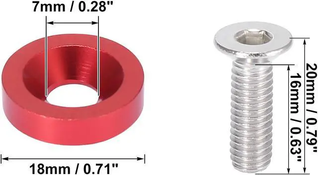 Washer Size: 7x18mm/ 0.28"x0.71" (ID*OD); Bolt Size: M6x1.0; Bolt Stem Length: 16mm/0.63"; Bolt Total Length: 20mm/0.79". Please confirm the size carefully before ordering.