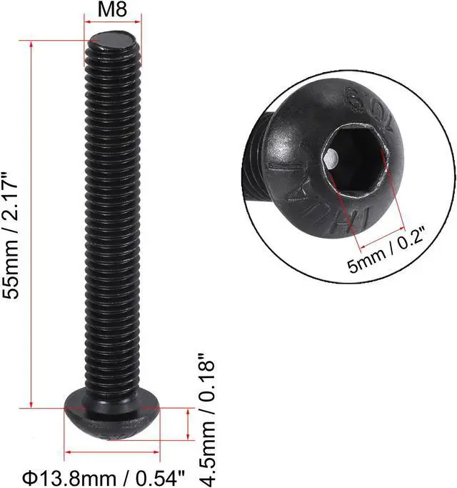 Feature: Button head machine screws, hex socket drive. Metric machine screws for universal use. 2.