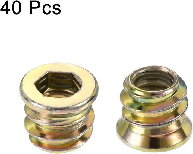 Description: 1. Made of carbon steel, color galvanized surface treatment, high hardness, and perfect wear resistance, inner hexagon socket, smooth, non-slip. 2. Suitable for hardwood, such as solid wood, has a good effect on the furniture combination. 3. The unique external thread ensures positive locking and offers strong resistance against pull-out due to torsion or vibration. 4. Make a hole smaller than the outer diameter of 0.2 - 0.5 mm and lock the nut with a hex wrench. The mounting hole should not be larger than the outer diameter of the thread. When the nut is locked, some wood glue can be applied to the outer teeth to make the fastening effect good.