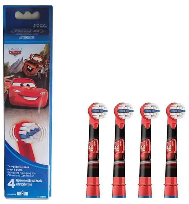 Compatible with most Oral-B kids electric toothbrushes, these 4-count replacement heads feature a fun Disney Cars design to make brushing exciting for children.