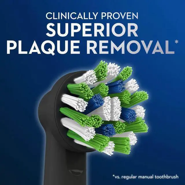 CrossAction 3D Cleaning: Angled bristles reach deep between teeth, removing up to 100% more plaque than manual brushing for a thorough clean.