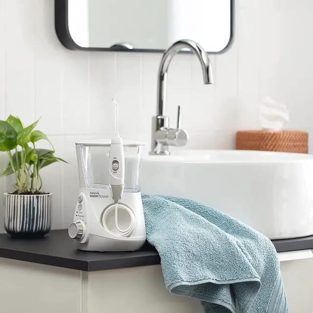 EASY AND EFFECTIVE: The Waterpik Aquarius water flosser removes up to 99.9 percent of plaque and is up to 50 percent more effective than dental floss for improving gum health. Just fill the reservoir with warm water, place the tip in your mouth, and start flossing.