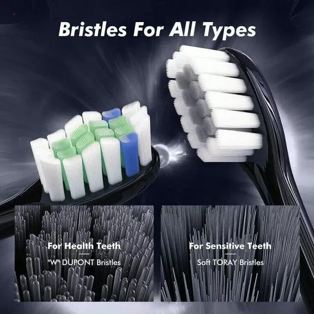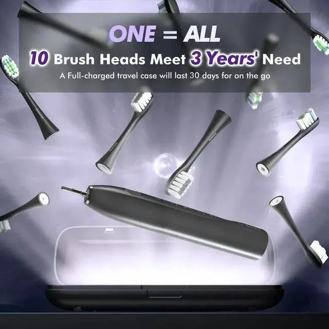 10 Dupont Heads Last for 3 Years: Sonic electric toothbrush comes with 8 DuPont brush heads, which you can use for 2 years. High-density bristles and design in "W" shape can go into the gum thoroughly, removes the stubborn tooth stains deeply. You can share a toothbrush with your family, and use different color collars to distinguish the toothbrush heads of different family members.