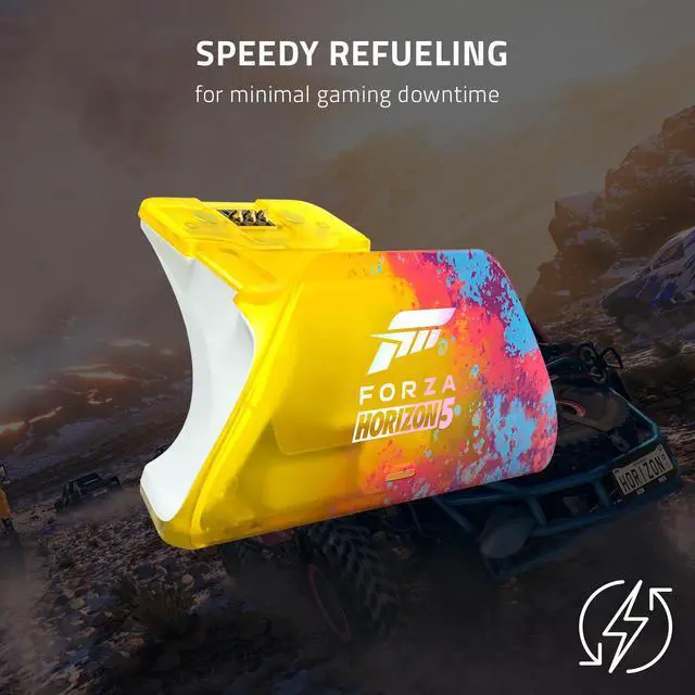 Accelerate your win with the Razer Quick Charging Stand for Xbox Forza Horizon 5 Limited Edition ( POWERING THE RACE ) - a race - ready essential that keeps your Xbox controller at prime power levels as you steer , drift , and maneuver your way towards Horizon superstardom .