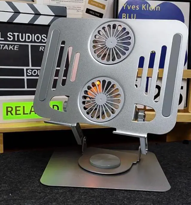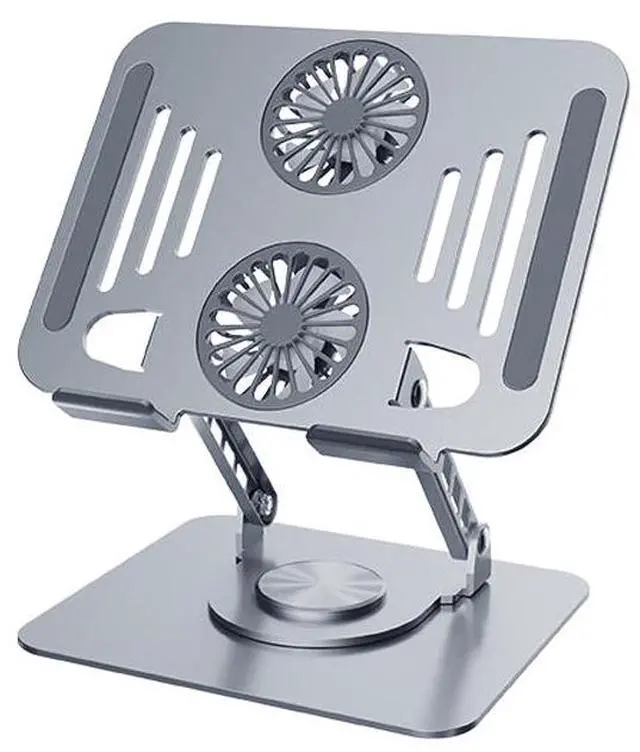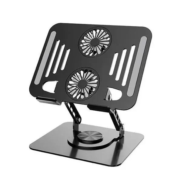 • Dual-Fan 360 Rotating Adjustable Height Carbon Steel Laptop Stand 10kg Load Capacity for 10-17inch Laptops Desktop Cooling Stand