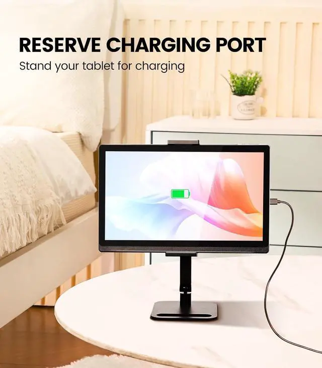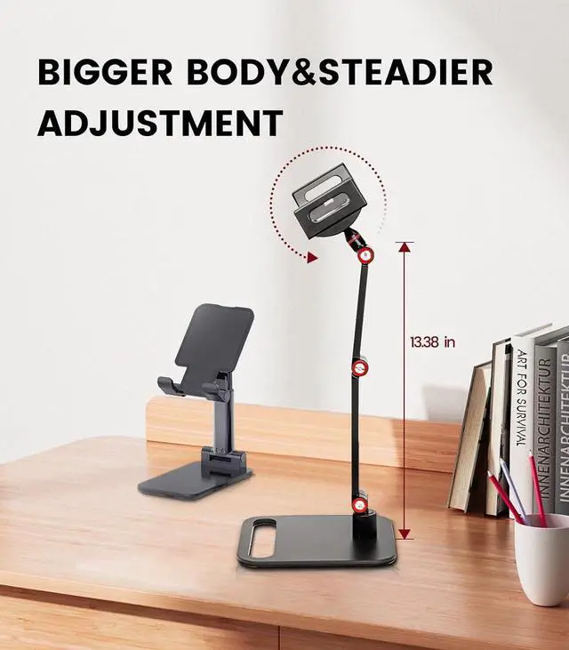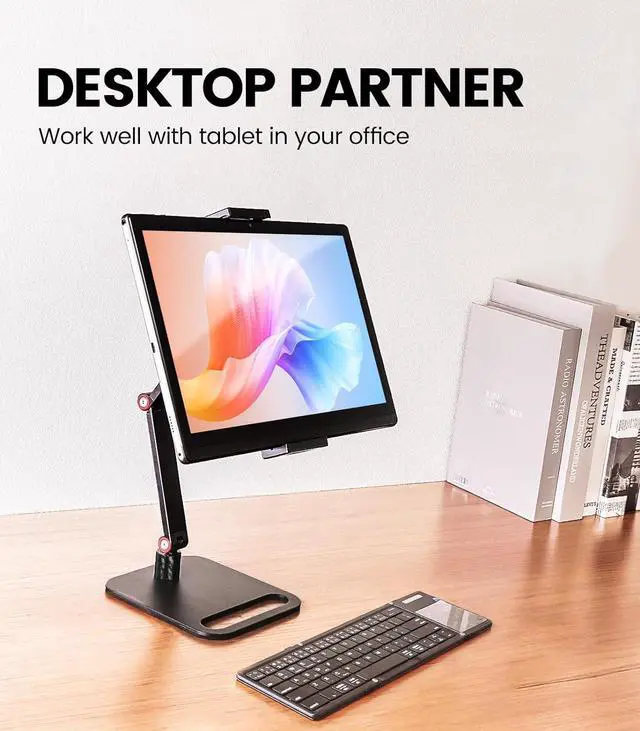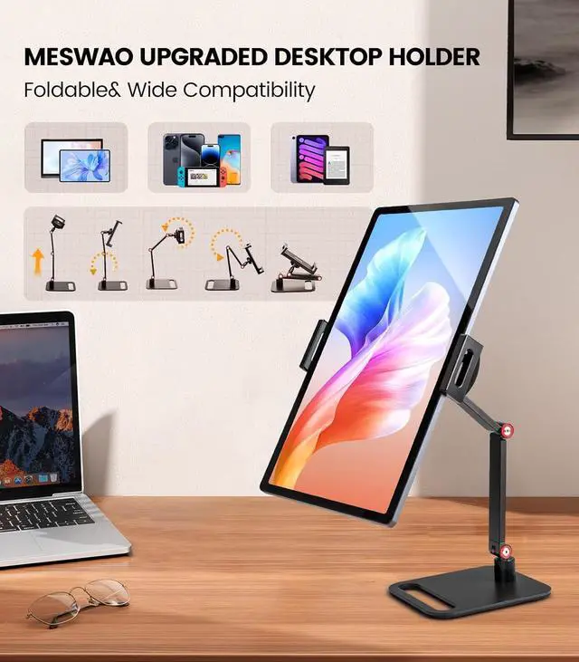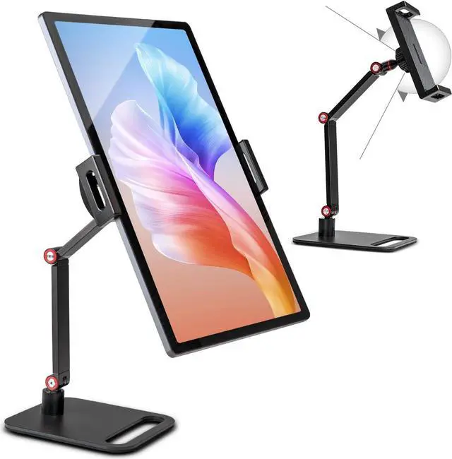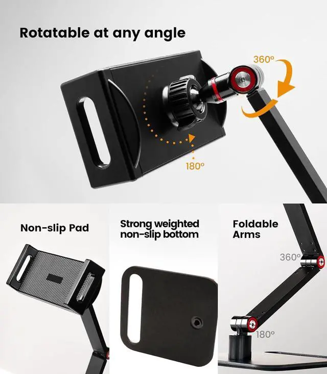 Tablet Stand Holder, Desktop Tablet Phone Stand with 2 Adjustable Arm and 360° Rotates, Foldable Stand Holder Compatiable with iPad iPhone Tablet