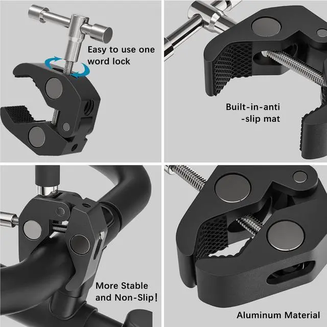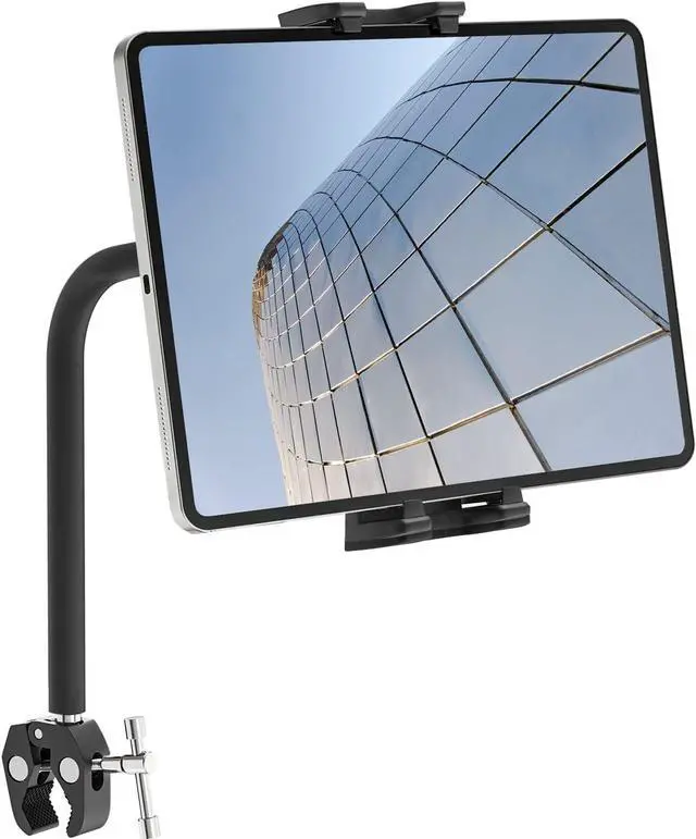 Durable & Reliable: The ultra-strong construction allows this treadmill tablet mount can withstand strenuous exercise. The gooseneck arm is made of carbon steel material with a thickness of 0.51 in, which is strong yet flexible to prevent your device from wobbling. The aluminum alloy handlebar clamp is fitted with a non-slip mat to ensure it stays firmly on the handlebars without scratching them. The tablet clamp mount jaws are covered with non-slip pads to protect your device from scratches.
