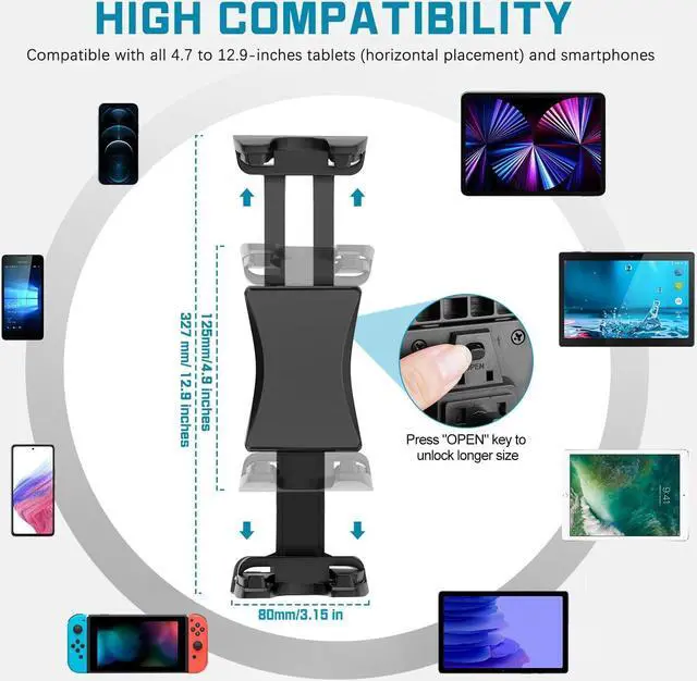 Wide Compatibility: This adjustable exercise bike tablet holder has the 4.9 inch - 9.8 inch width opening, which is fit for all 4.7" - 12.9" screen mobile phones and tablets, compatible with iPad Pro 12.9 / 11/ 10.5 / 9.7 inches (Large Tablets such as 12.9" iPad Pro Can ONLY Mount Horizontally, NOT Vertically), compatible with iPad Air 3 4 5, iPad 7 8 9, iPad Mini 4 5 6 iPhone 14 13 12 11 Pro Max, and compatible with Samsung Galaxy View/ Note Pro/ Tab Pro, ect.