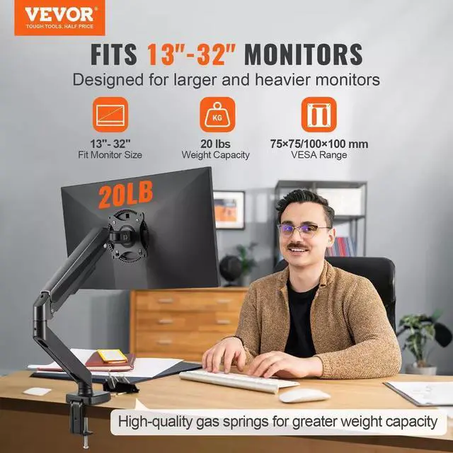 1. Our monitor mount is a perfect match for 13"-32" monitors, designed with the flexibility to support heavier and larger screens, holding up to 20 lbs.