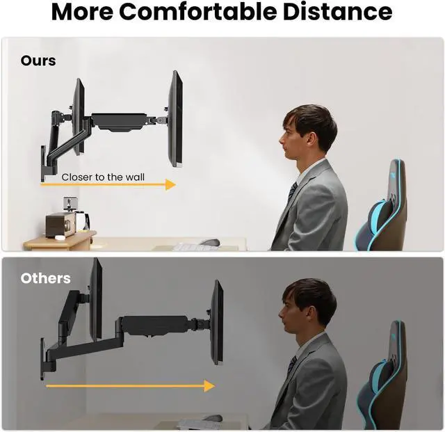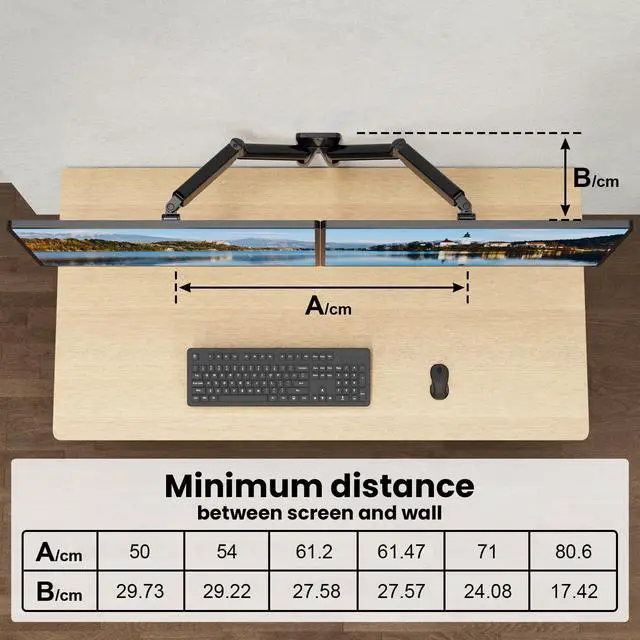 The dual monitor wall mount perfectly fits most of LCD LED flat screens and computer monitors up to 32 inches and 19.8 lbs. VESA mounting sizes of 75 x 75 and 100 x 100 are ideal for offices, bedrooms and more.